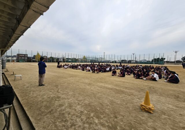 学年行事のクラスマッチがグラウンドでおこなわれました。種目は男女ともにサッカー。広いグラウンドをフル活用し、拍手と歓声とともに仲間を応援しました。朝練をしていたクラスもあり、笑顔はじける姿がそこにはありました。校舎から見ている1年生は、自分たちの2年後の姿をそこにみたのではないでしょうか。