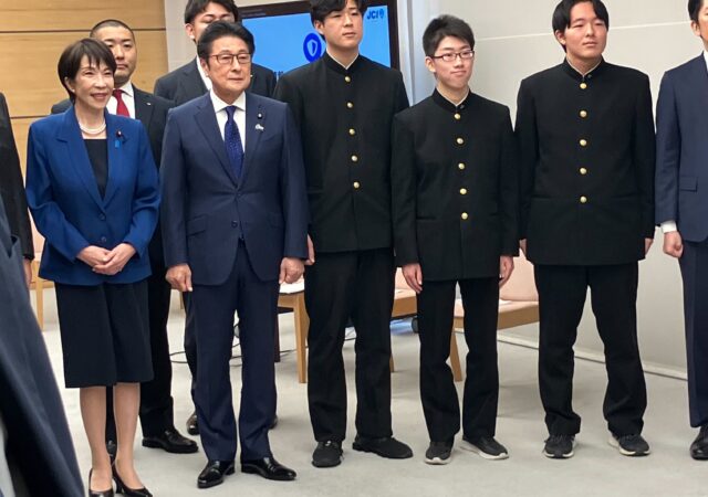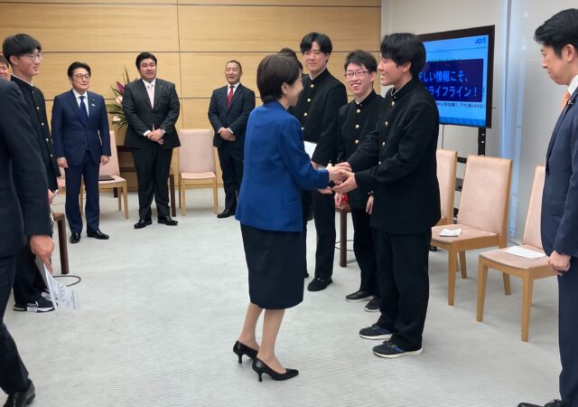 本日10:00より、本校の代表3名が、首相官邸で高市総理にプレゼンテーションを行いました。