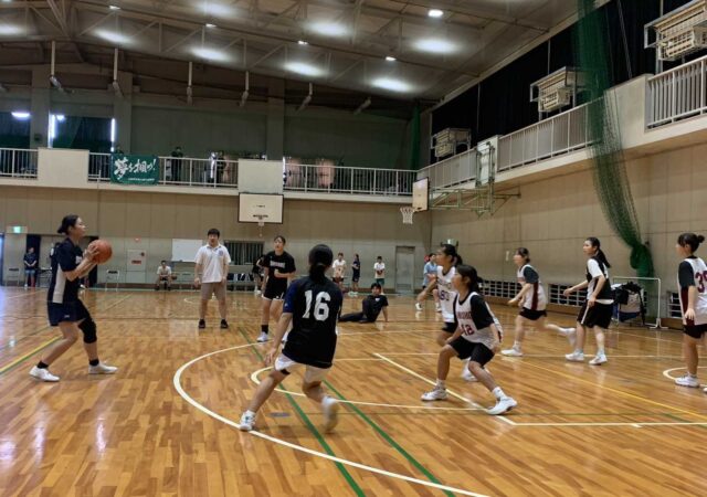 WC予選が終わり、新人戦に向けて日々の練習に汗を流す毎日です。先週の日曜日には、近隣の中学校やクラブチームをいくつか招待し、泉大津高校との共催という形で「中学生交流試合」を実施しました。まだ新チームになりたての1・2年生主体のチームが多く、パワフルで上手な選手もいれば、練習初めで慣れない競技に苦戦中の選手もいるなどチームによってそれぞれでしたが、一生懸命にバスケットに取り組む姿勢は、高校生にとっても刺激になりましたね。鳳高校と泉大津高校も中学生との試合に参戦です。中学生にはまだまだ負けてられないと気合い十分で臨みます。さすがは高校生!しっかりと勝ち切ることができました。日頃の成果もしっかりと出しつつ、高校生のサイズ・スキル・スピード・テクニックなどの違いを体感してもらえたのではないでしょうか。鳳高校も泉大津高校も、勉強に部活動にと一生懸命学校生活を頑張る生徒を応援する学校です。高校に入学して一緒にバスケットボールができる日を楽しみにしています。中学生の皆さん、頑張ってください。今後とも応援よろしくお願いします。