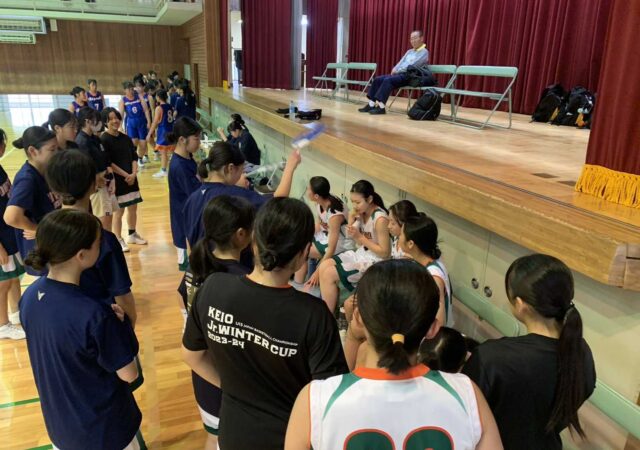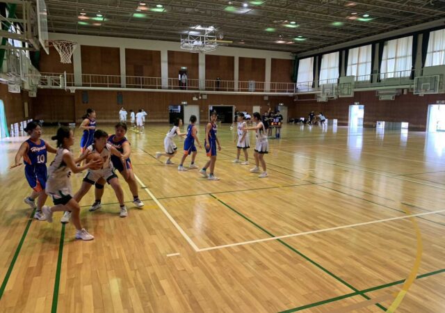 高さのあるチームにどう対抗するかが課題でした。相手のインサイドの厚みに意識が行き過ぎてしまい、せっかく1対1の勝負で勝っていてもシュートまでつなげられず、オープンの3Pを連発・・・。リズムは悪くはないのですが、外のシュートをなかなか決めきることができず、序盤は苦戦を強いられます。また、ディフェンスリバウンドもボロボロ・・・ことごとく、セカンドチャンスを与えてしまい、たまらずタイムアウト。リバウンドとルーズボールはチームが始まってからずっと課題です。気持ちを出さずして勝てるはずがありませんので、粘り強く絡みにいくことを意識しました。後半は、得点からのゾーンプレスで時間をかけさせ、サイズのある選手をヘトヘトの状態に追い込みます。最後は自分たちのリズムできっちりと勝ち切り、3戦全勝の1位通過を果たしました。