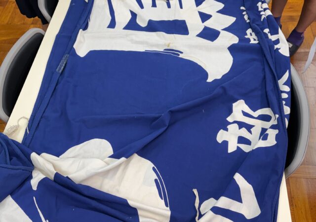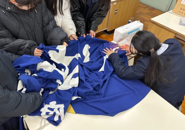 40期・41期のOGの方々から寄贈いただいた部旗。長らく使用しているうちに気づけば紐の部分がボロボロになってしまいました。 そこで、家庭科の先生のご指導・ご協力のもと部員たちで修繕作業に臨みました! 慣れないミシンでの修繕作業を経て、無事紐を新しく付け替えることができました! 生まれ変わった部旗と共に心機一転、今週末に控えた公立校大会に一丸で挑みます! 応援のほどよろしくお願いします!